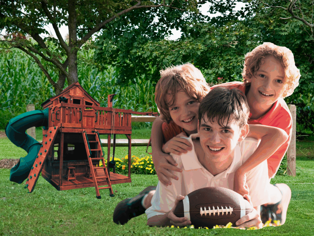 At Backyard Fun Factory, we know that what matters most, whether you’re under stadium lights or backyard string lights, is time spent together. Our redwood playsets are built to last through every season and every phase, from toddler cheers to teenage chats in the fort.