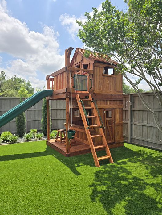 At Backyard Fun Factory, we specialize in custom redwood playsets that turn even the most challenging backyards into magical, functional play spaces.